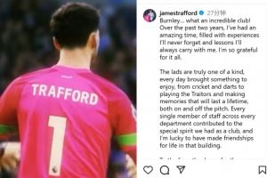 体育资讯7月30日讯 曼城已经官宣签回22岁门将特拉福德,后者也通过社媒发文告别伯恩利: