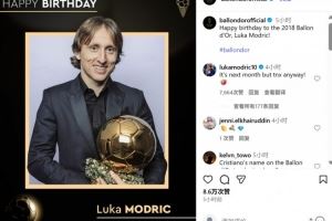 乌龙,金球奖官方祝莫德里奇生快,后者回复:谢谢,不过是在下月